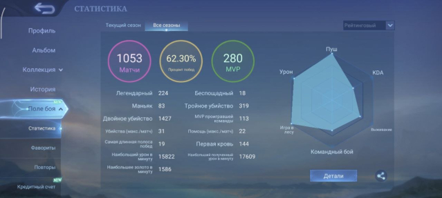 Процент побед: 62