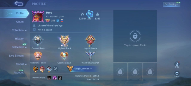 📌 Привязки и сторонние привязки: Moonton и почта Gmail, сторонние привязки отсутствуют