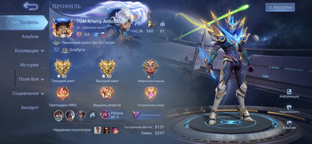 Легенд гусь💥чемпион региона💥60 звезд, 800 поинтов весна млбб, Продажа, Ранг: Мифический, Уровень: 64, Процент побед: 51%, Герои: 115, Облики: 225