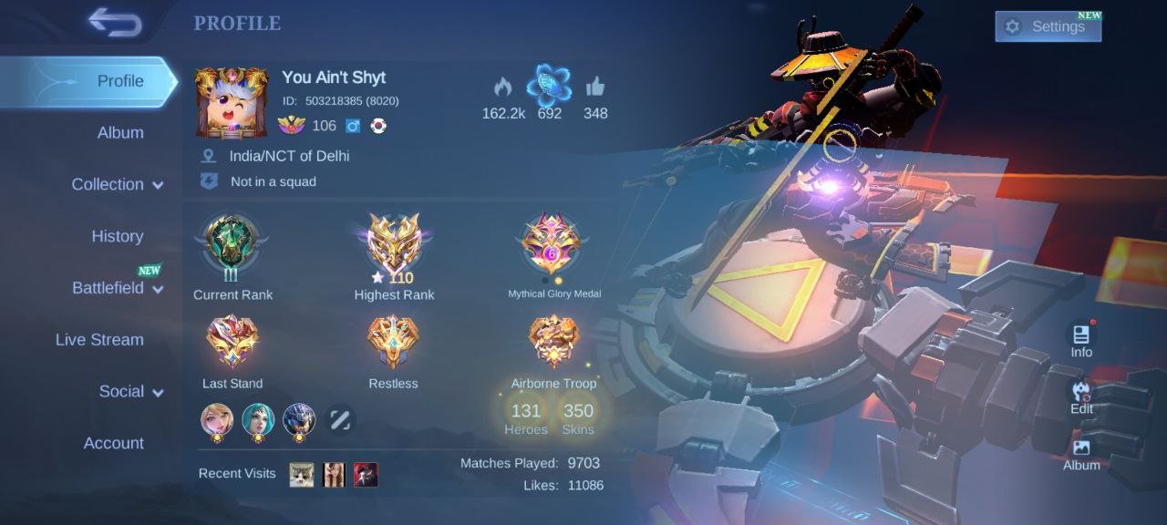📌 Привязки и сторонние привязки: Moonton и почта Gmail, сторонние привязки отсутствуют