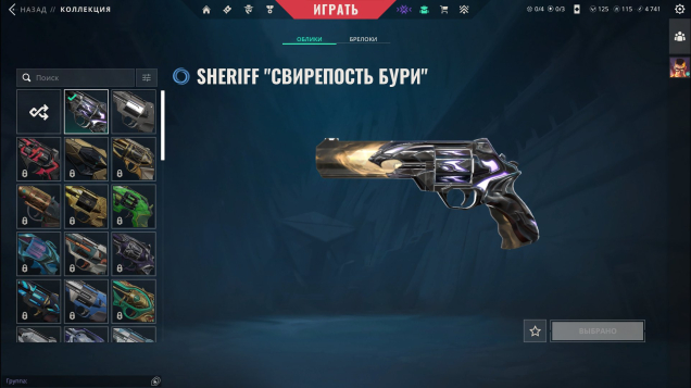 Топорик Дисперсия | Spectre Дисперсия | Phantom Дисперсия | Frenzy Дисперсия | Ares Дисперсия | Bucky Свирепость бури | Guardian Свирепость бури | Classic Суперсет | Operator Свирепость бури | Marshal Суперсет | Sheriff Свирепость бури | Vandal Суперсет