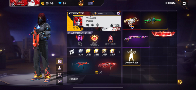Продаю личный прокачанный аккаунт Free Fire. Отлично подойдёт как для основы, так и для игры на рангах.