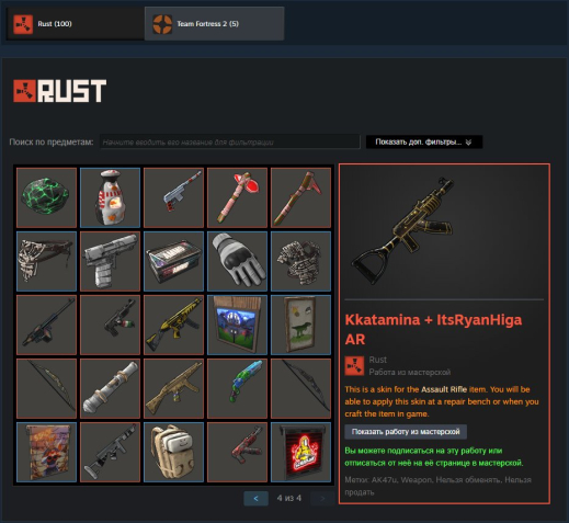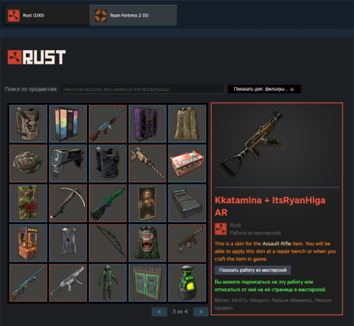 Краткое описание: ✅ RUST 1000 ЧАСОВ В 3 играх ,100 СКИНОВ В RUST✅ KICK DROPS+ AK47 Vaybae AR