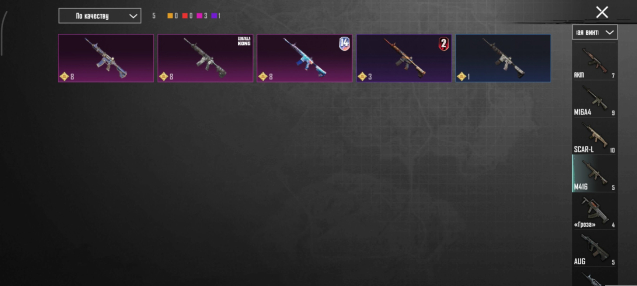 Прокачиваемые оружия: 1-9