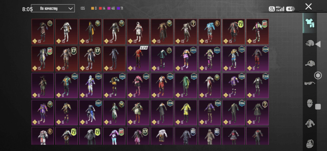 ⭐Тут написано что есть с самого главного (остальное показано в обзоре): 25 мификов, олд акк 7 лет, 68 лвл, 44 лвл коллекции, мифик титулы уникальная судьба, 6 вех, трудяга, 2 прокачиваемых скинов на оружие, 207 легендарок, 368 эпиков, оранжевый комбинезон, костюм спайдермен, плащ «гонщик» серебряный, желтый спорт. костюм штаны и куртка, мифик юбка, 104 скинов на оружие, 9 скинов на транспорт, много эмоций и скинов на самолеты, донатные мифики