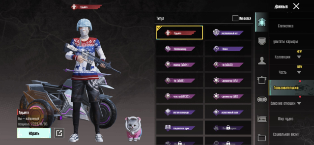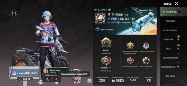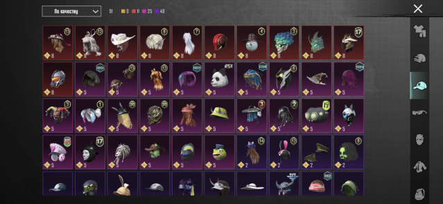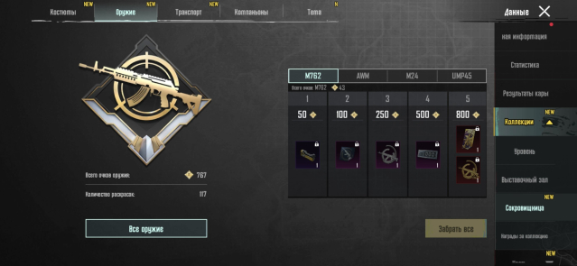 ⭐Тут написано что есть с самого главного (остальное показано в обзоре): 35 мификов, титулы, много эмоций, 14 прокачиваемых оружий, 9 скинов на транспорт, питомец кот, 274 легендарок, 303 эпиков, 117 скинов на оружие, костюм «жёлтый цитрус» маска клыки, M762 звёздное ядро 1/7, много донатных мификов, киллчат, шлем ледник
