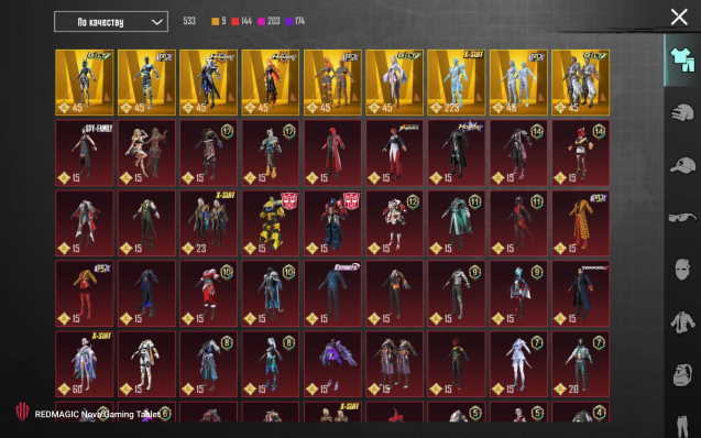 Краткое описание: 77 ур колекции | 233 Мифик костюма | 7 спорткаров | 11 золота | 4 м416 фул | 69 прокачеваемых пушек