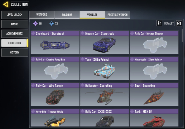 ◘ 🚗 Скины (на транспорт): 20 эпических, 73 редких