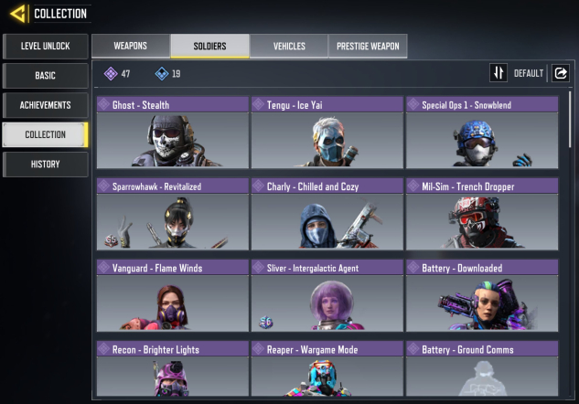 ◘ 🛡️ Скины (на персонажа): 47 эпических, 19 редких