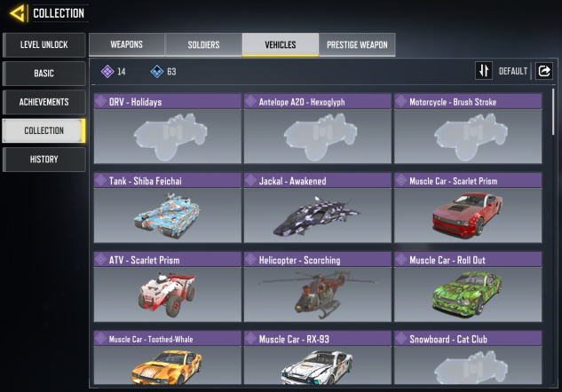 ◘ 🚗 Скины (на транспорт): 14 эпических, 63 редких