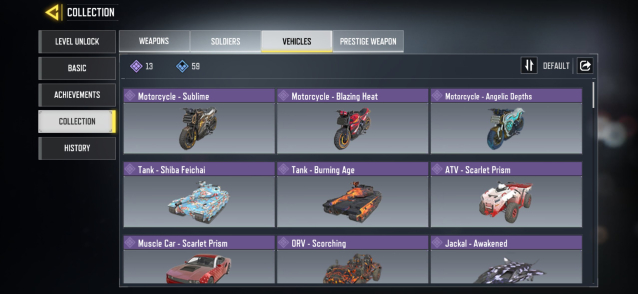 ◘ 🚗 Скины (на транспорт): 13 эпических, 59 редких