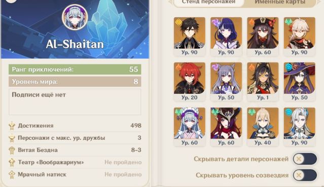 Краткое описание: [Личный] ⚡️Ранг 56⚡️Нёвиллет⚡️Райдэн⚡️Чжун Ли ⭐ Часка ⭐ Кадзуха ⭐ Ху Тао
