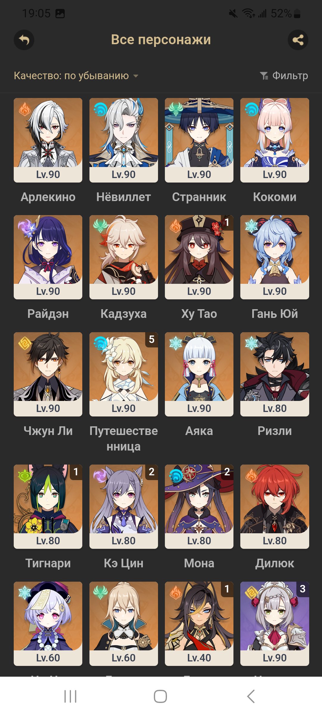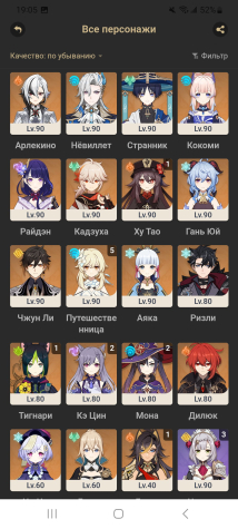 В Genshin: Так же на многих легах полная прокачка. Сюжет закончен на Фонтейне. Есть сигны на Арлекино, Нёвилетта, Кадзуху, Ху Тао, Гань Юй.