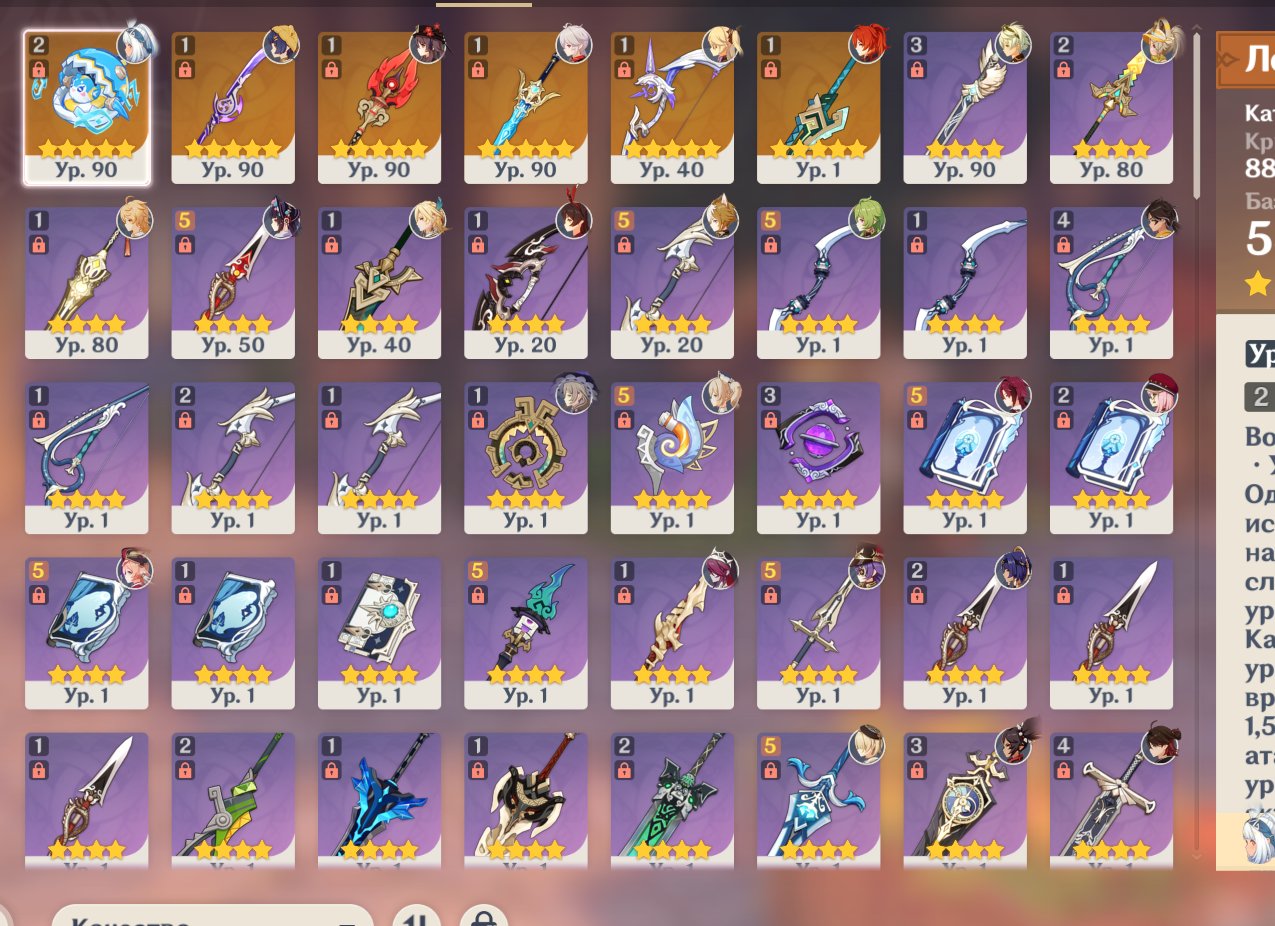 🟢Оружие 5зв: Посох Хомы, Лови Волну, Сияющая Жатва, Клятва Свободы, Лук Амоса, Клык Горного Короля.