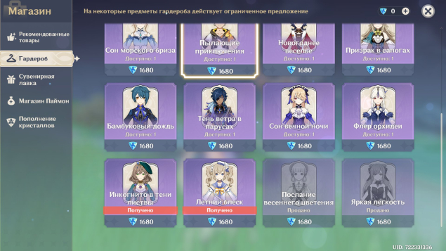 Краткое описание: 29 лег⭐АЯКА+СКИН⭐Кэ Цин С1+СКИН⭐ГАНЬ ЮЙ+АКВА⭐САЙНО+СИГНА⭐ХУ ТАО⭐НЕВИЛЛЕТ⭐КАДЗУХА⭐ШЭНЬ ХЭ⭐КОКОМИ⭐тд.
