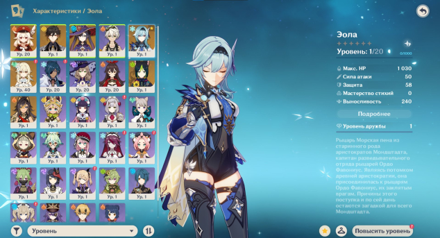🌾4: персонажи — Лиза С4, Кэйа С1, Беннет С2, Сахароза С3, Фишль С3, Шеврёз и др. ☆