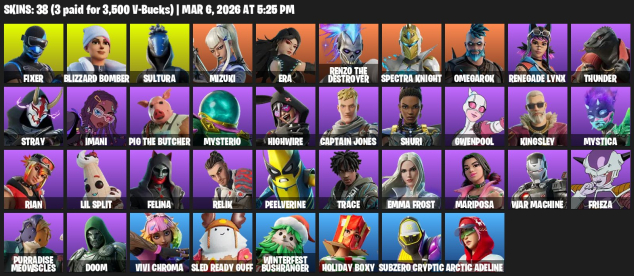 Краткое описание: 💜38 skins💜700 V-Bucks💜Frieza💜Renegade Lynx💜Spectra Knight💜Sultura💜