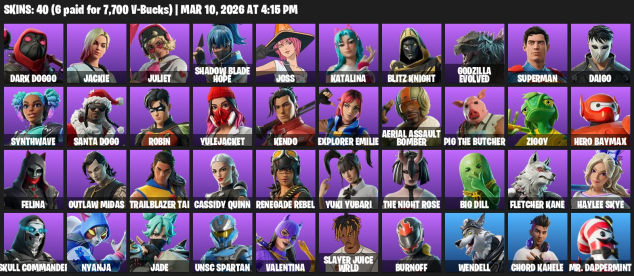 Краткое описание: 💜40 skins💜Renegade Rebel💜Fletcher Kane💜Skull Commander💜UNSC Spartan💜Valentina💜Wendell💜