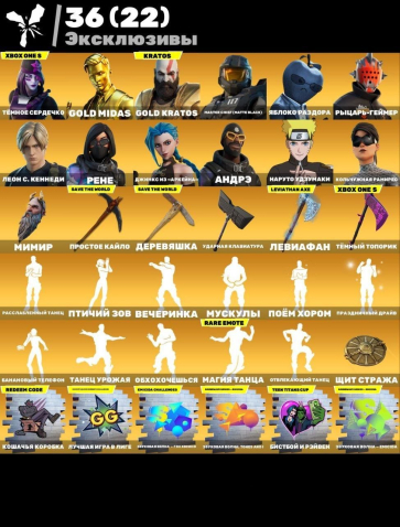 Краткое описание: 🌐Личка 677 скинов + 609 кирок + 408 эмоций + 296 глайдеров + 350 оберток + авто (скрины в описании)📷