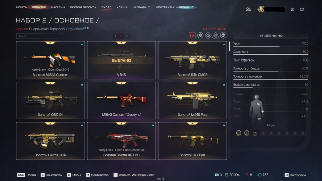 Краткое описание: ТУРНИРНЫЙ Продаю свой личный аккаунт, КУЧА ЗОЛОТОГО оружия на каждый класс.