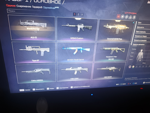 Подробное описание: Много скинов гардероба, м249пара голд, аш12, type97, m16а3 castum, сайга12с, голд фабарм 12, six12, kel-Tec kSG, FN SCAR-LPDW, AX-308, Cheytac m2000, Steyr scout special шторм, sig Sauer, desert digl.+kral arms, бушмастер.A545.+ пистолет гранатамет+Bergara MG.и прелично пистолетов ножей.