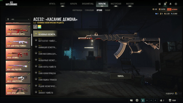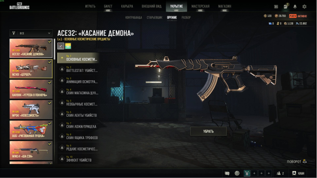 Имеются много скинов на другие виды оружия.одежда с батлпассов.