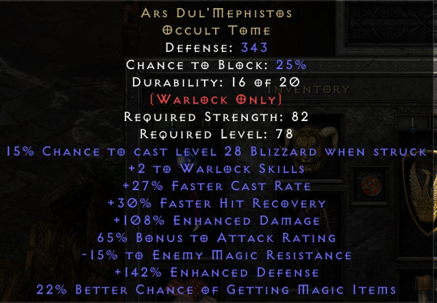 Краткое описание: Ars Dul’Mephistos +2 to Warlock Skills +70–115% Enhanced Damage