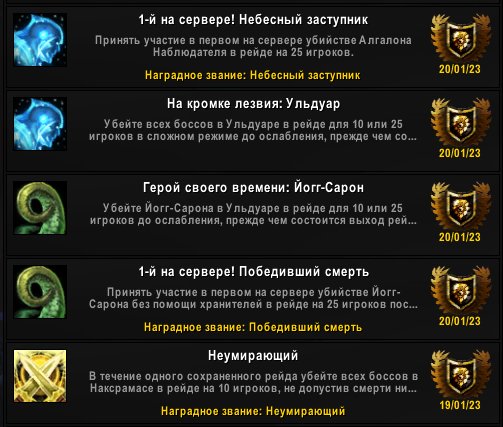 Краткое описание: 1-й на сервере! Победивший смерть + много других титулов и ачивок