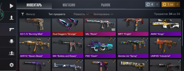 По скинам тоже норм: несколько топовых позиций, есть что показать и чем играть. Аккаунт не с пустышками, собирал для себя.