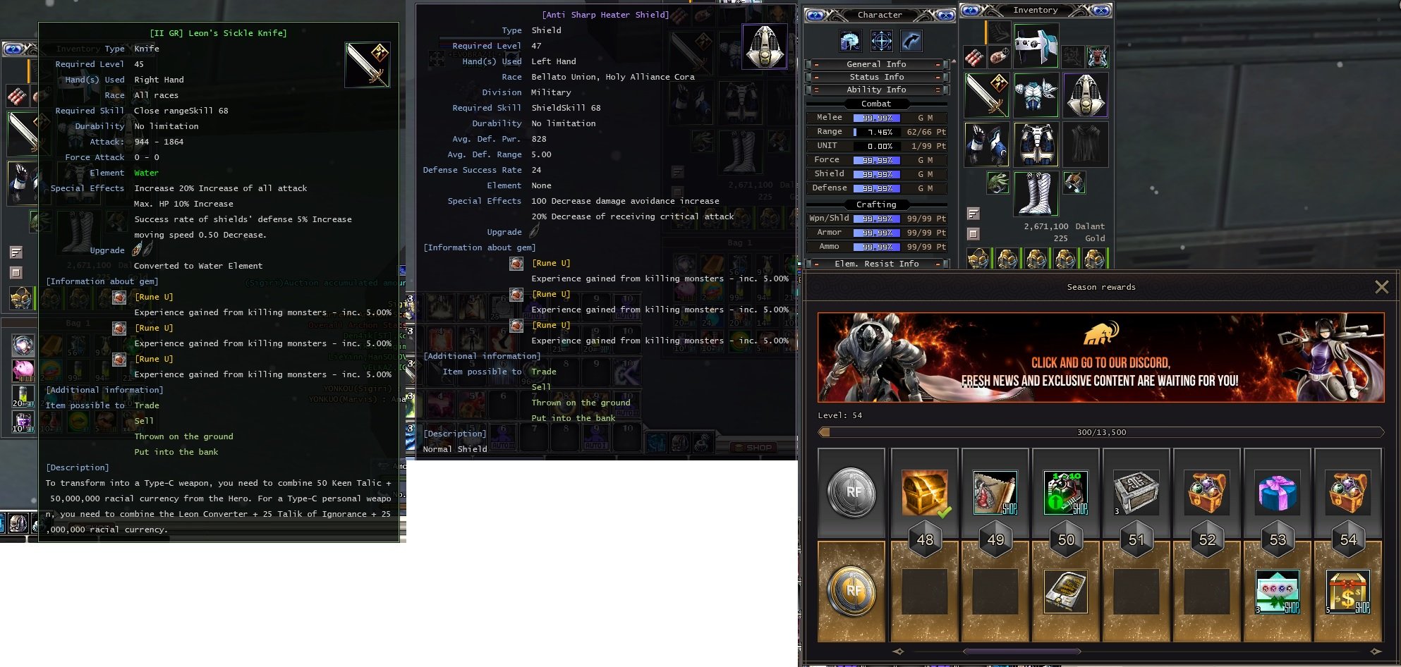Shield 47 antisharp with 3 runes EXP (5%)