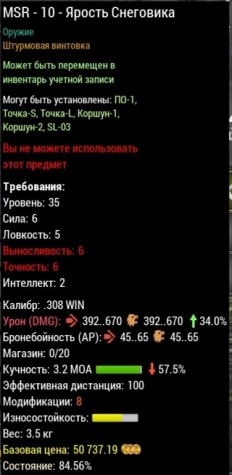 Подробное описание: 🔥MSR-10 Ярость Снеговика. Урон 34% (мин 392-670, Куча 57.5%, Износ стоковый)🔥любой сервер