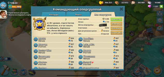 Опергруппа своя 5к очков, примерно 40дней с момента создания.