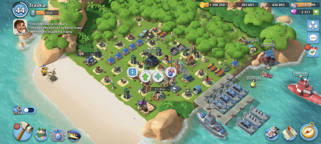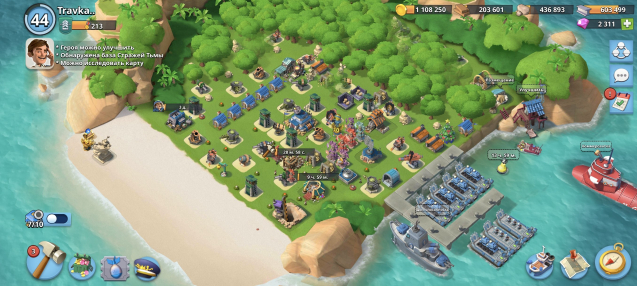 Подробное описание: 44 уровень, штаб 17, медалей 213, 2311 алмазов, лодки 7шт 15ур, канонерка 16ур