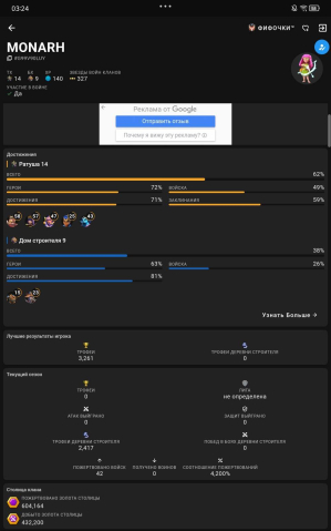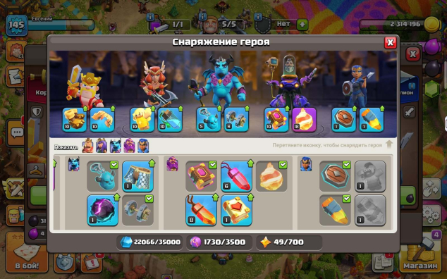 Уровень Ратуши: 14Краткое описание: 🥵𝟔𝟐% ТХ 𝟏𝟒🥵 🔱ГЕРОИ 𝟓𝟖/𝟓𝟕/𝟒𝟑/𝟒𝟕/𝟐𝟓🔱 👖𝟒 СКИНА👖 💎𝟕𝟑𝟎💎 👑𝟏𝟒𝟎 ЛВЛ👑 ✅Быстрая ВЫДАЧА✅