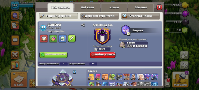 Уровень Ратуши: 15Краткое описание: Уровень: 177🔝 герои: 65/70/45/57/23 👑 Играбельное Снаряжение💟 БЕЗ ПАССАЖИРОВ ✅