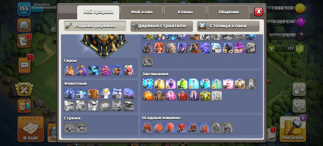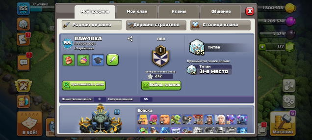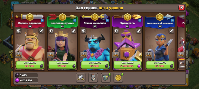 Уровень Ратуши: 17Краткое описание: Уровень: 155 🔝 герои: 54/65/43/23/14/1 👑 СНАРЯЖЕНИЕ: 🔝 БЕЗ ПАССАЖИРОВ ✅