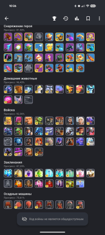 Уровень Ратуши: 18Краткое описание: Продам отличную 17тх фулл. 13 эпик 100/100/90/75/50