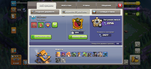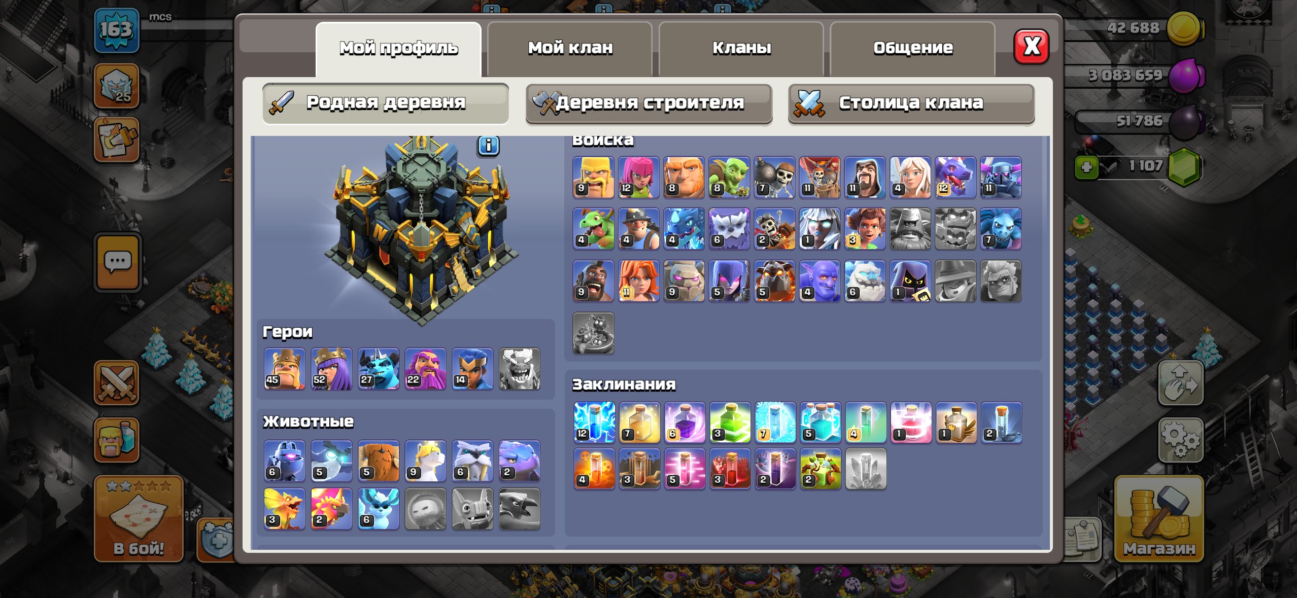 Уровень Ратуши: 17Краткое описание: 17 полуфулл 1113 гемов 5 строителей 45/52/27/22/14