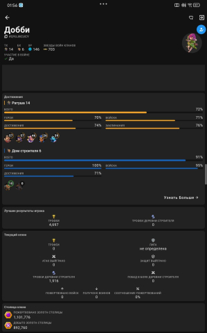 Уровень Ратуши: 14Краткое описание: 🐉𝟕𝟐% ТХ 𝟏𝟒🐉 🪙ГЕРОИ 𝟓𝟕/𝟓𝟕/𝟑𝟗/𝟒𝟔/𝟐𝟔🪙 🏆Рояль 8.2к🏆 💎𝟏𝟖𝟖𝟎💎 👑𝟏𝟒𝟔 ЛВЛ👑 ✅Быстрая ВЫДАЧА✅