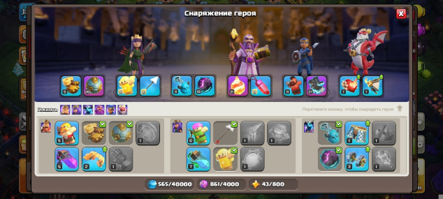 Уровень Ратуши: 15Краткое описание: 💥💥💥80% ФУЛЛ 15TH💥💥💥ГЕРОИ 72 87 53 61 31 1💥💥💥3 СКИНА💥💥💥3 ЭПИК СНАРЯГИ💥💥💥GOLD PASS💥💥💥