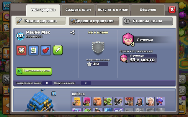 Уровень Ратуши: 12Краткое описание: ⚡Быстрая ВЫДАЧА⚡🏰𝟏𝟐 TX🏰⭐𝟏𝟒𝟕 𝗟𝗩𝗟⭐💟𝟕 СКИНОВ💟💚𝟏𝟓𝟒𝟔 ГЕМОВ💚👑ГЕРОИ 𝟔𝟎/𝟔𝟐/𝟑𝟐/𝟒𝟎👑