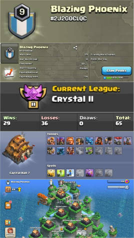 Краткое описание: BLAZING PHOENIX | LEVEL 9 CLAN | CRYSTAL 2 CWL LEAGUE | CLAN CAPITAL 7 | WIN 29 | LOSE 36