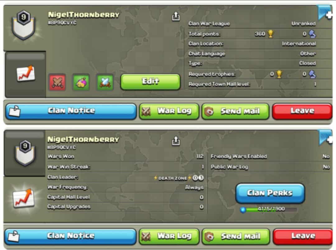 Краткое описание: LEVEL 9 UNRANKED CWL CLAN | USA BASED NAME | CLAN NAME- «NIGELTHORNBERRY»