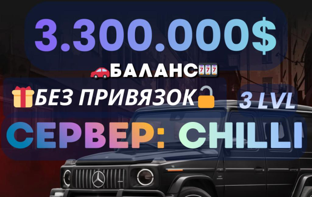 ⚡️ ПОЛНЫЙ ДОСТУП ⚡️ АККАУНТ С 3.300.000$ + 3 LVL + VIP ⚡️ CHILLI ⚡️ БЕЗ ПРИВЯЗОК ⚡️ СМОТРИТЕ ОПИСАНИЕ ⚡️Уровень: 3