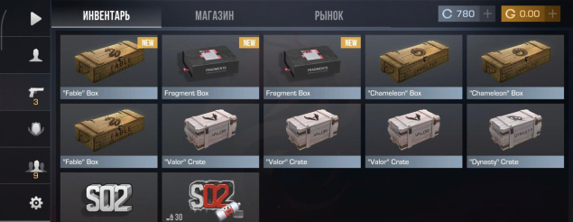 📦 BOXES: В инвентаре 10 боксов/крейтов (Chameleon, Fable, Fragment, Valor, Dynasty).
