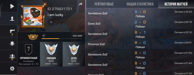 Продаю личный аккаунт. Всё апал сам, без читов. Статистика идеальная, история матчей (8-0, 8-1) на скриншотах.
