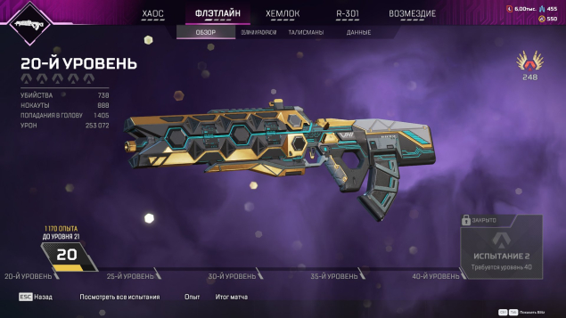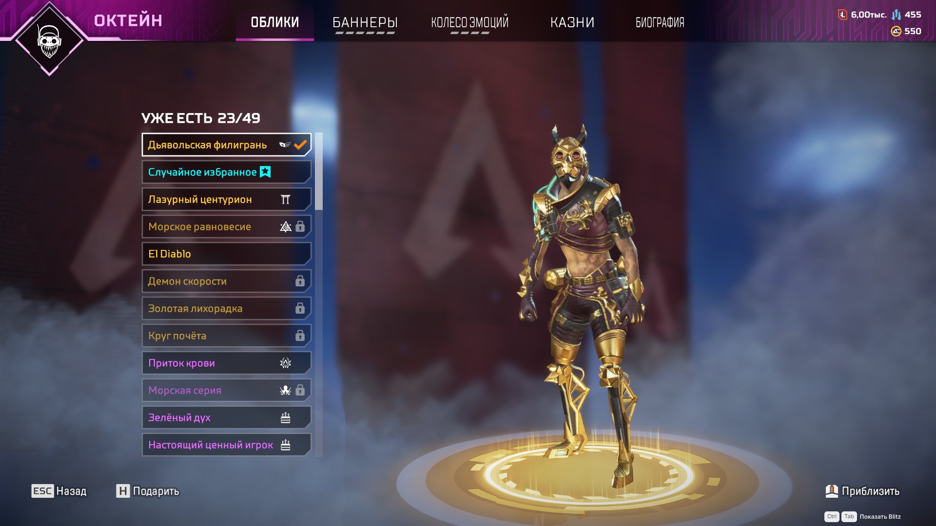 Аккаунт с 4 сезона, с полностью прокачанными 4, 5, 6, 11 бп (вроде. давно не заходил). Есть рарный флетлайн т5 скин, золотой/сильвер.