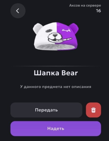 Сервер: №22Тип предмета: Аксессуары