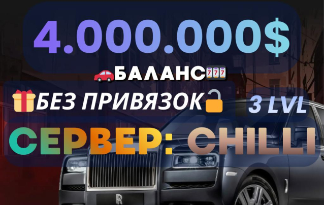⚡️ ПОЛНЫЙ ДОСТУП ⚡️ АККАУНТ С 4.000.000$ + 3 LVL + VIP ⚡️ CHILLI ⚡️ БЕЗ ПРИВЯЗОК ⚡️ СМОТРИТЕ ОПИСАНИЕ ⚡️Уровень: 3