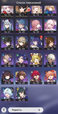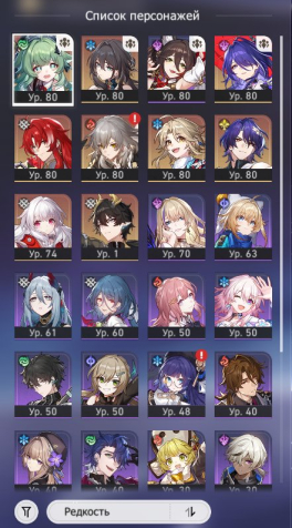 Подробное описание: Легендарные персонажи: Яньцин э2, Клара э1, Освободитель Пустошей, Хохо, Ахерон, Жуань Мэй, Аргенти, Доктор Рацио.